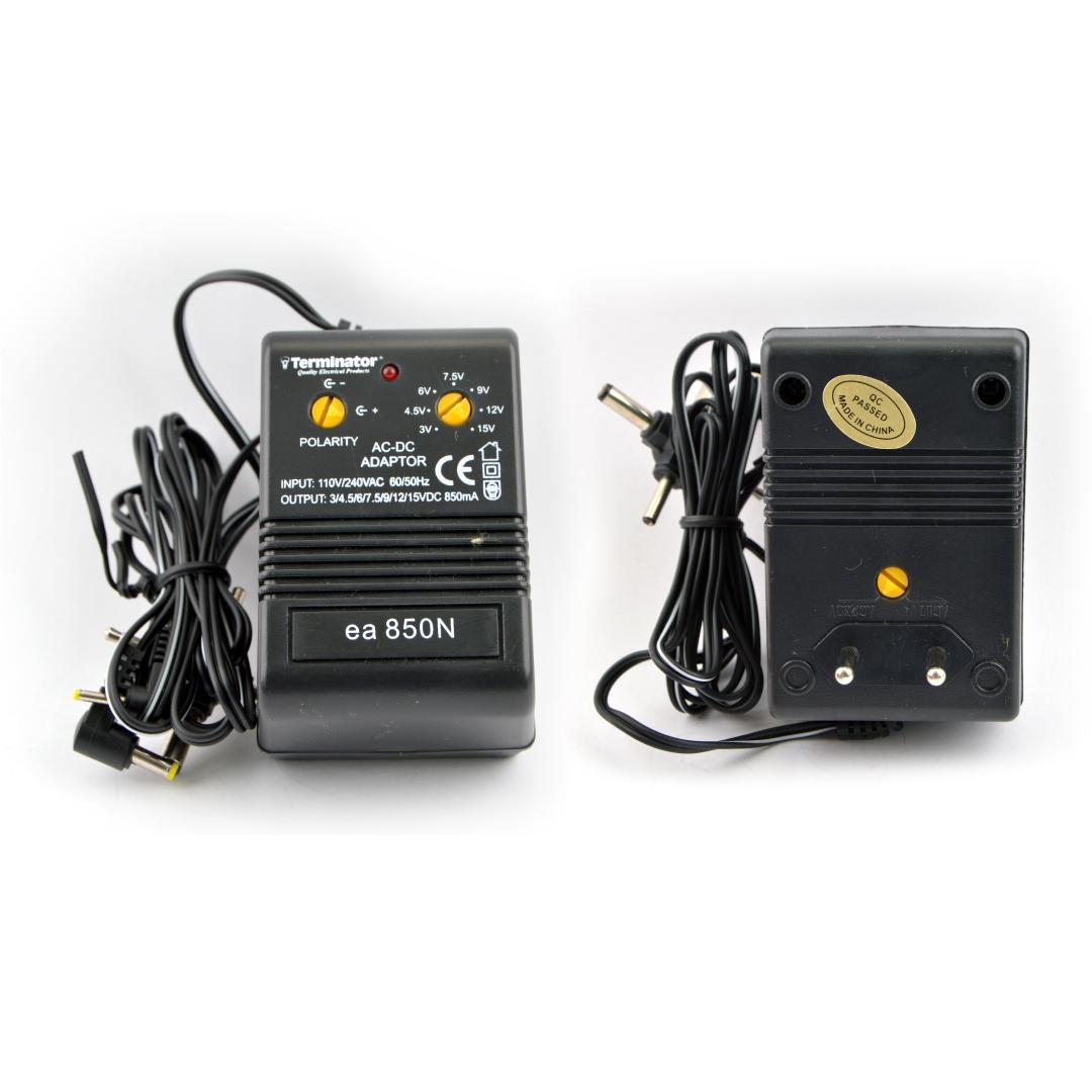 Универсальный AC-DC адаптер Terminator ea 850N позволяет устанавливать требуемое выходное напряжение в диапазоне от 3 до 15 В. Есть 6 разъёмов для питания.